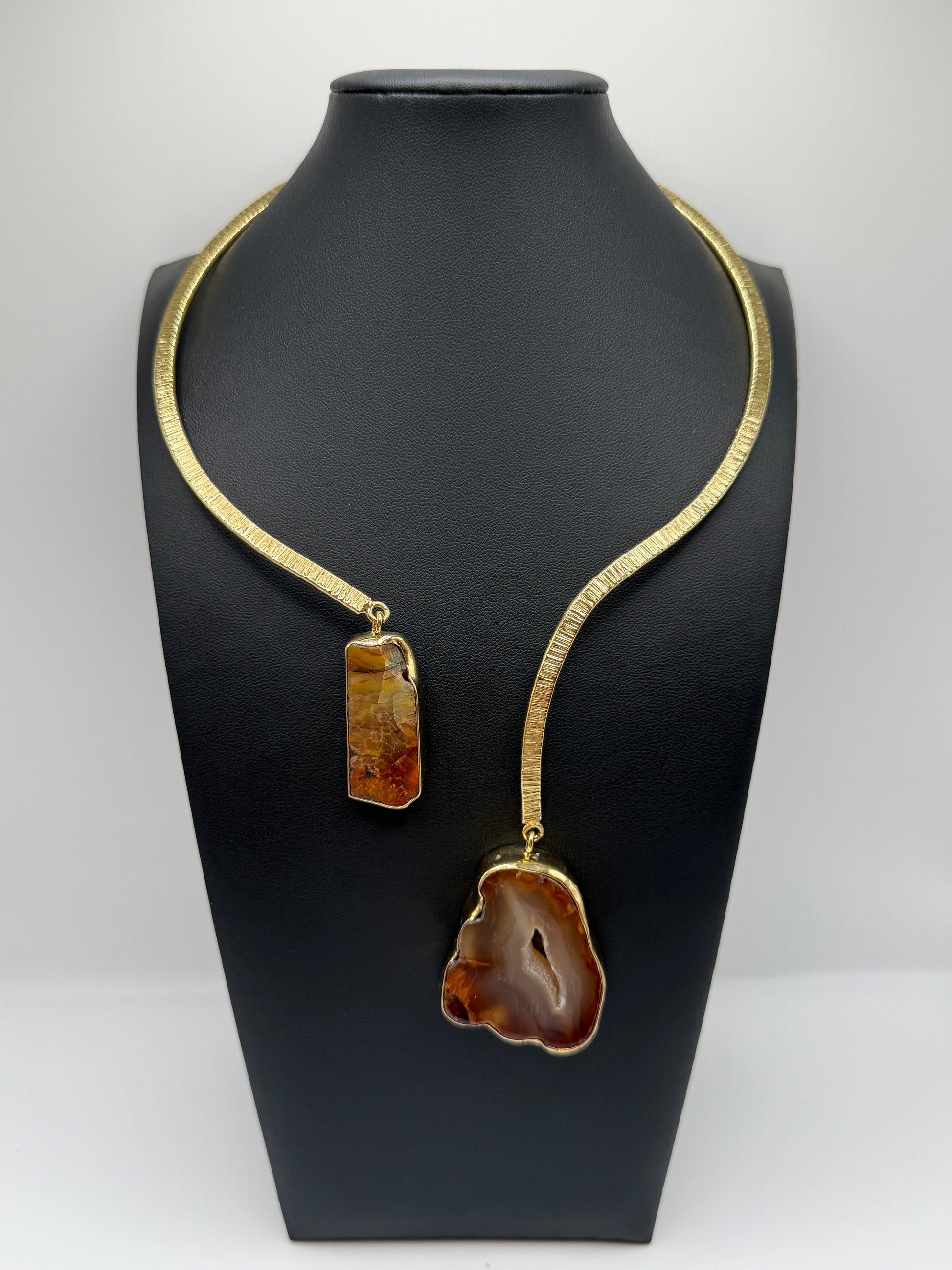 Layers of caramel and honey-toned agate flow within sculpted brass, grounded in natural asymmetry. Each form feels unearthed — organic, radiant, and full of quiet movement. Golden Terrain embodies the beauty of balance found in nature’s design.