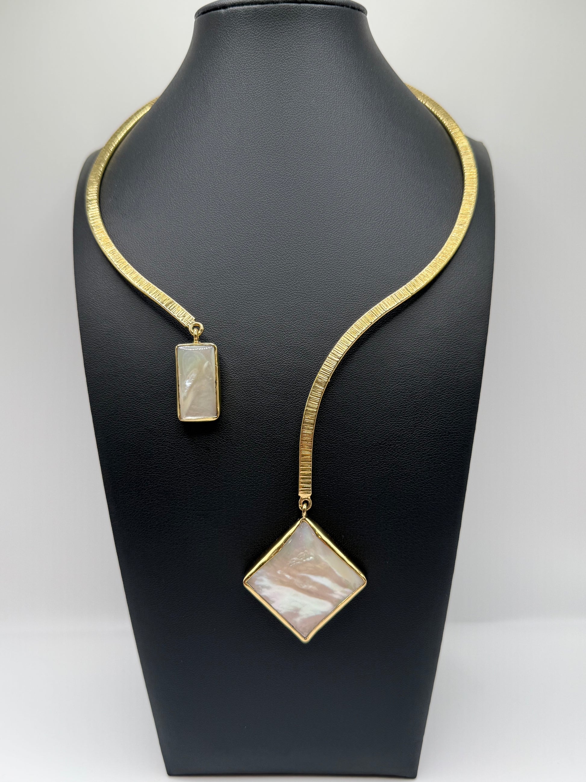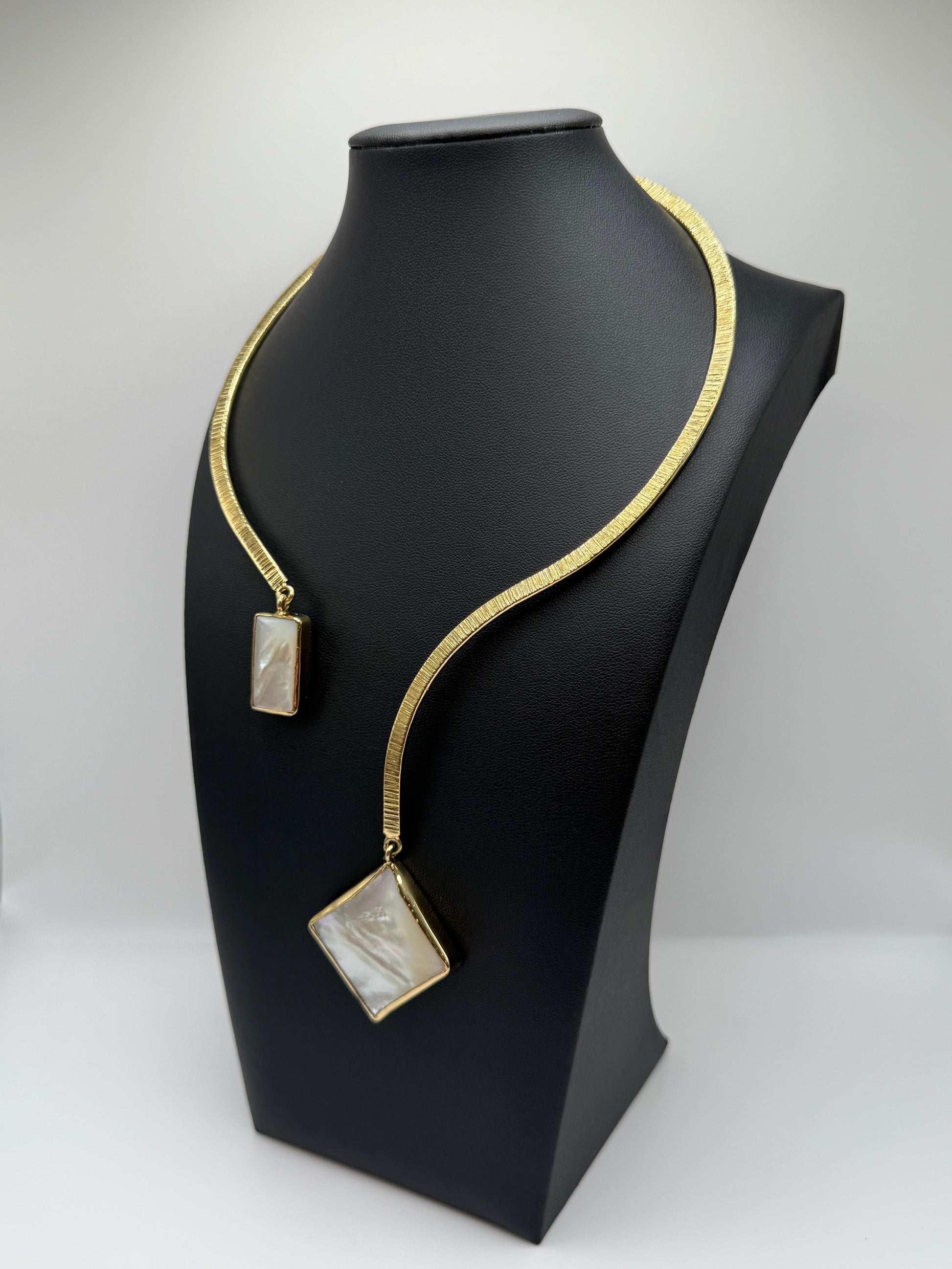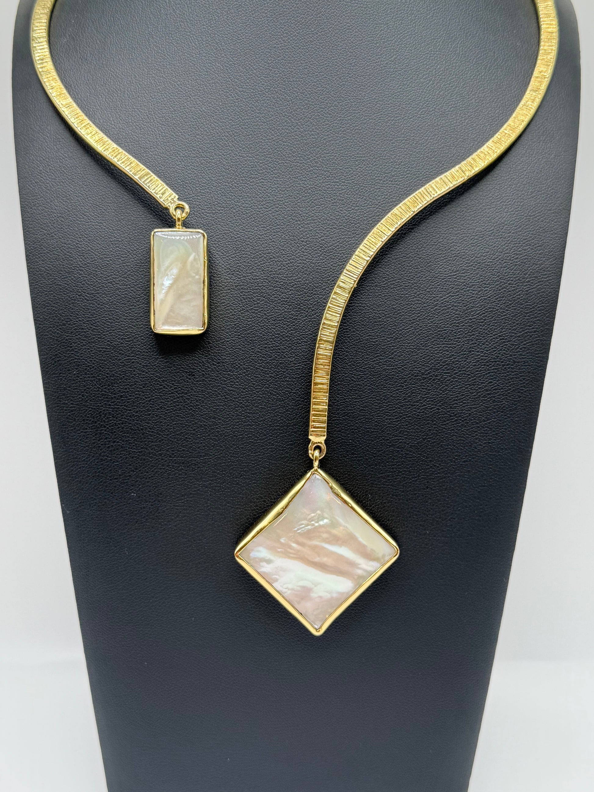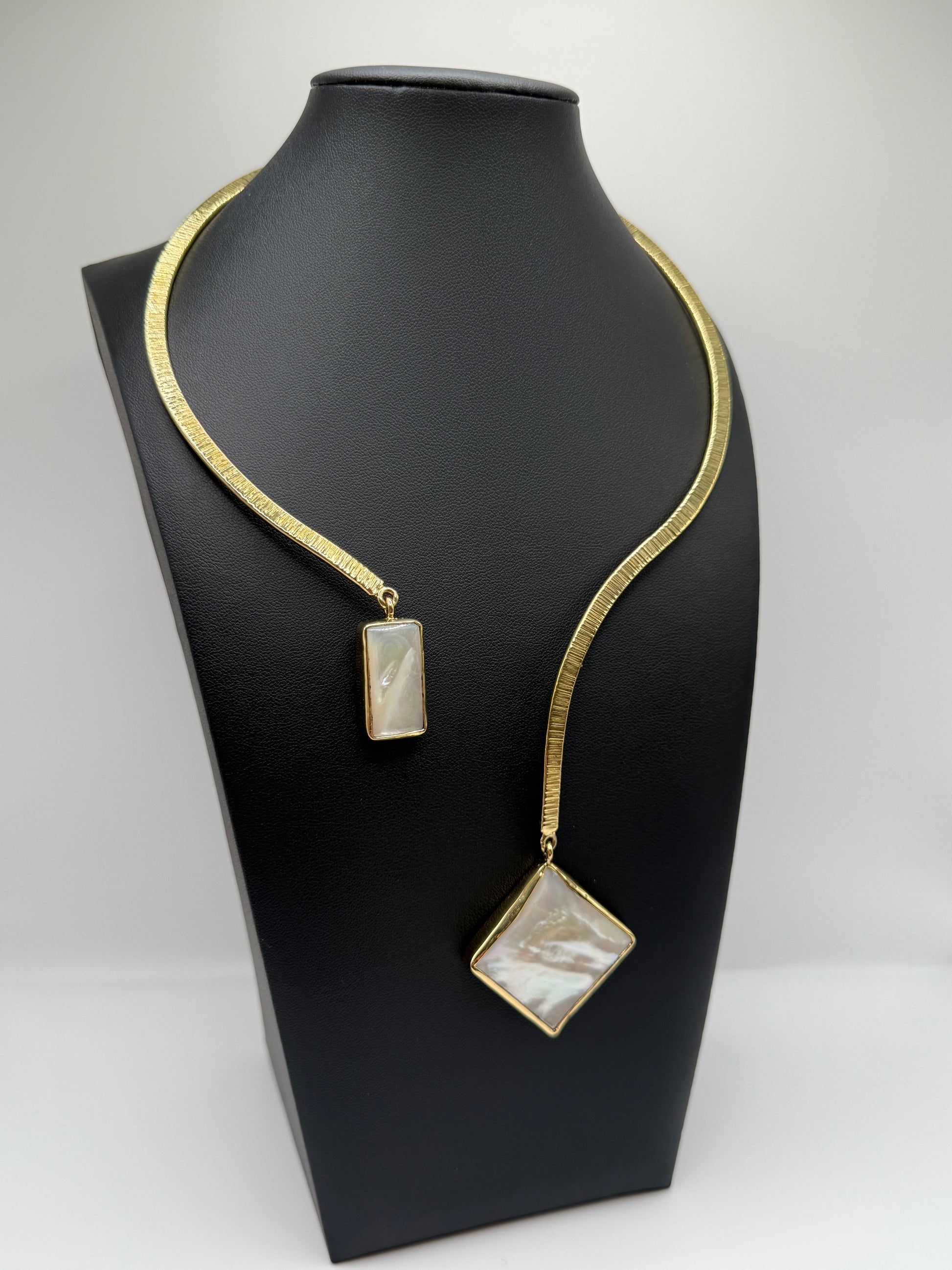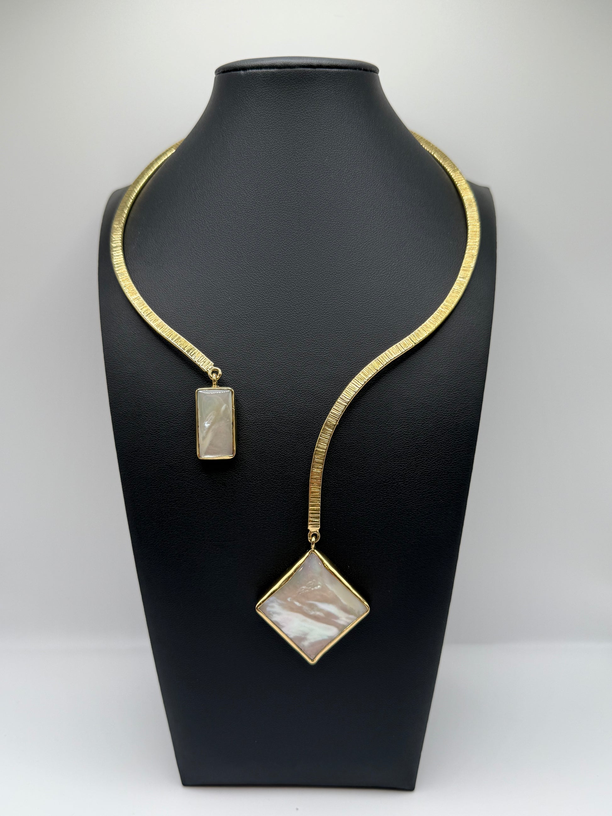 Born of the ocean and shaped by flow, Sea Poise embodies balance in motion. Its pearlescent surface catches light like water in motion, while hand-hammered brass grounds the piece with quiet strength. A study in contrast — soft yet structured, fluid yet powerful — it’s a reminder to carry balance wherever you go.
